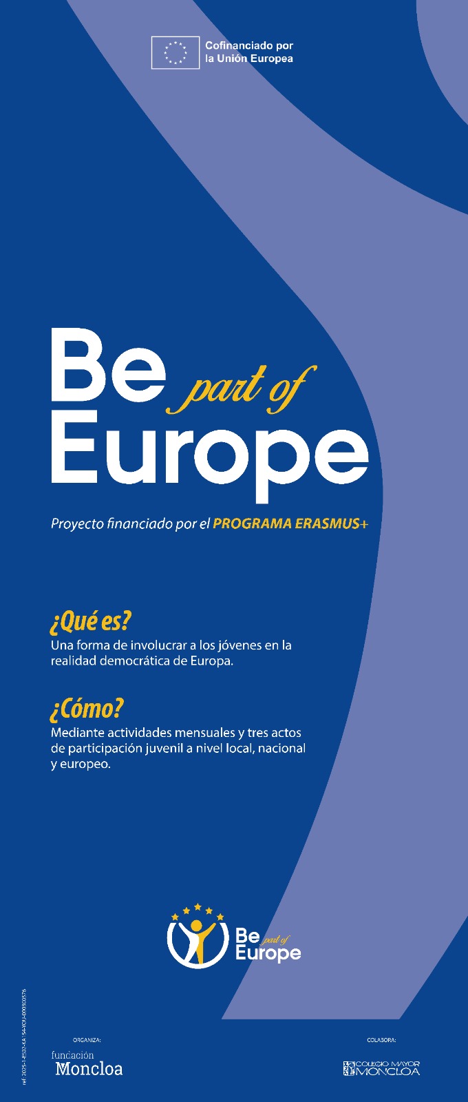 La Fundación Moncloa estÔ desarrollando el proyecto europeo BE PART OF EUROPE, subvencionado por el programa Erasmus+ en el marco de la. Acción de Participación Juvenil, orientada a fomentar la implicación activa de los jóvenes en la vida democrÔtica europea.